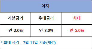 기본 2.0%기본금리에 우대금리 혜택을 받기 위해서는 몇가지의 조건을 충족해야 하는데요.